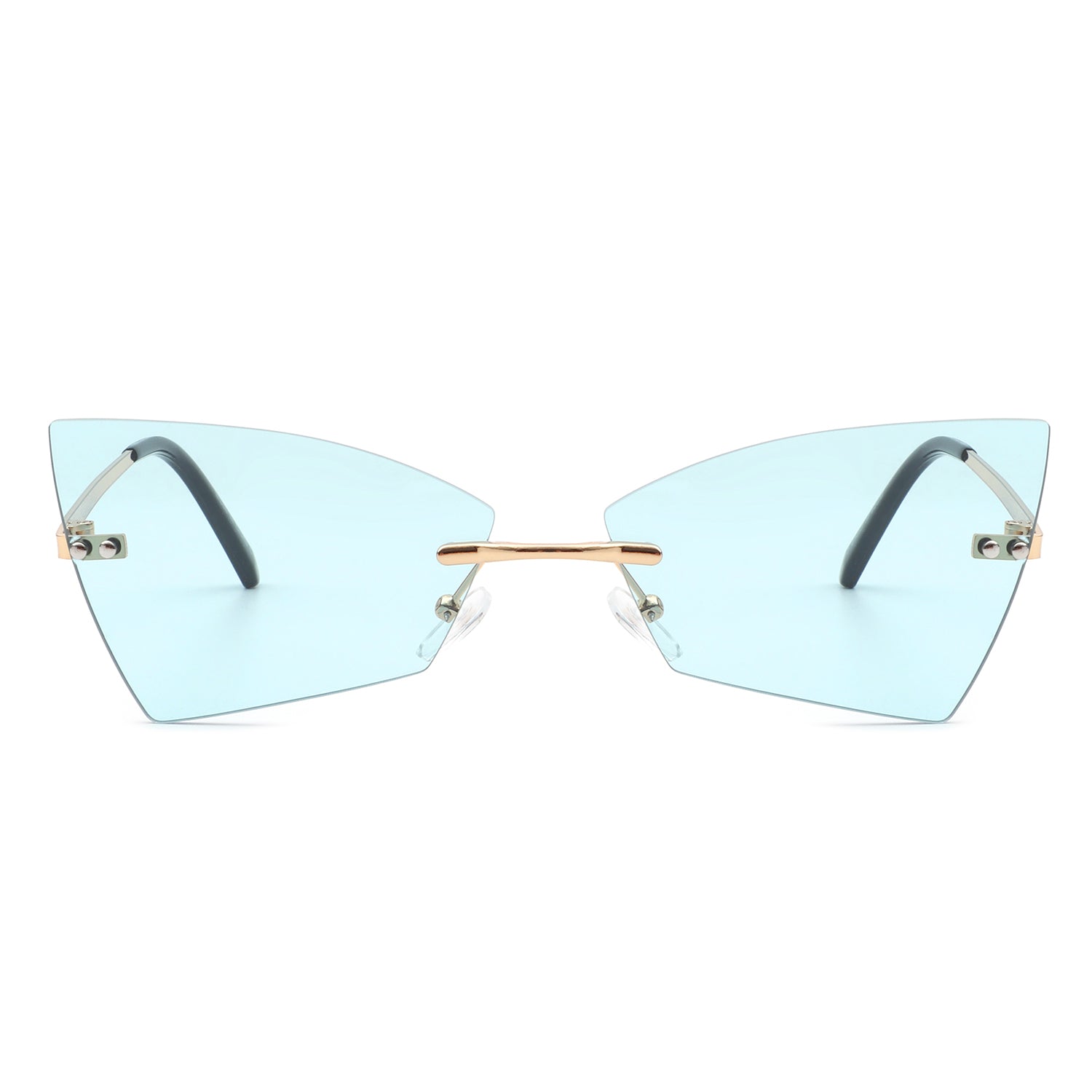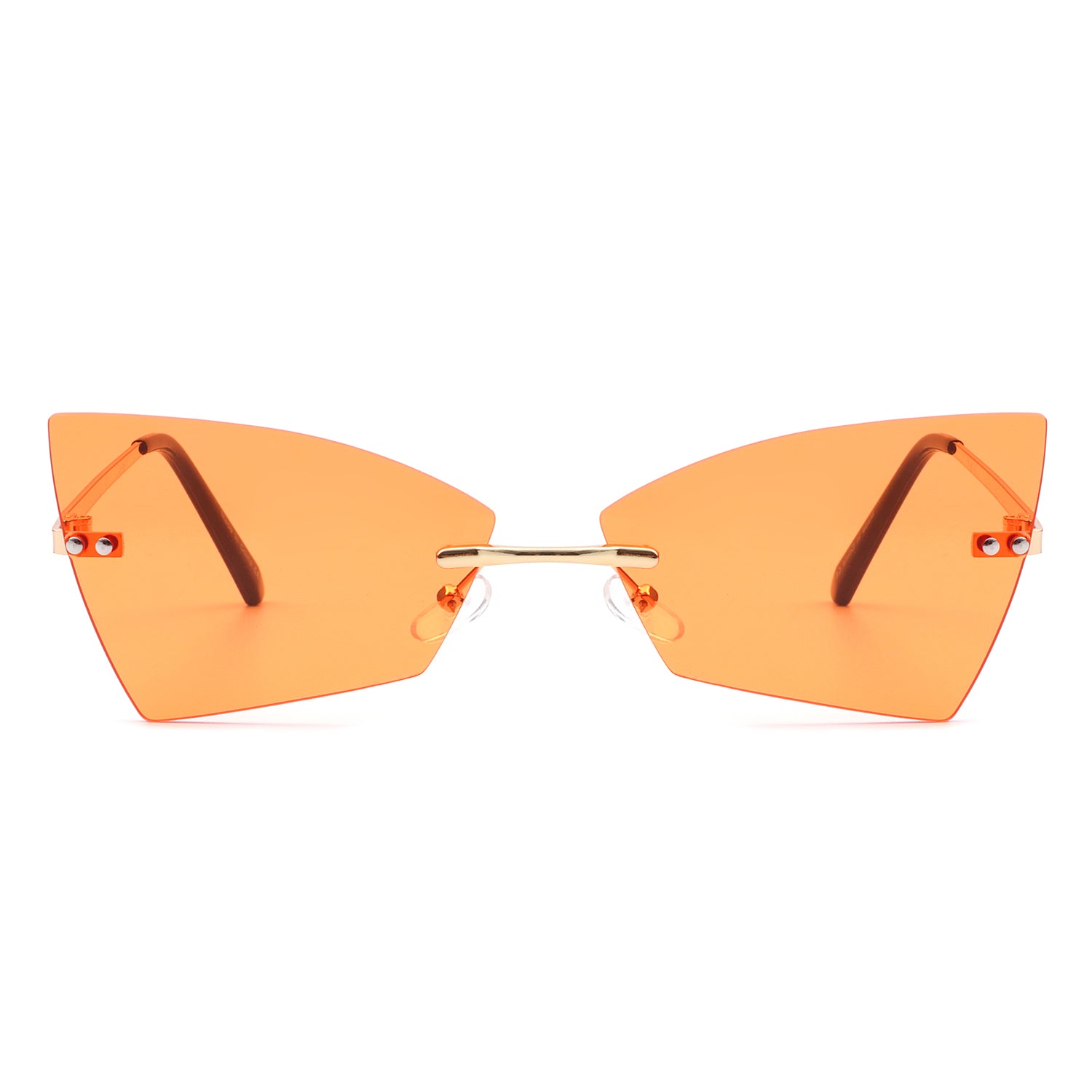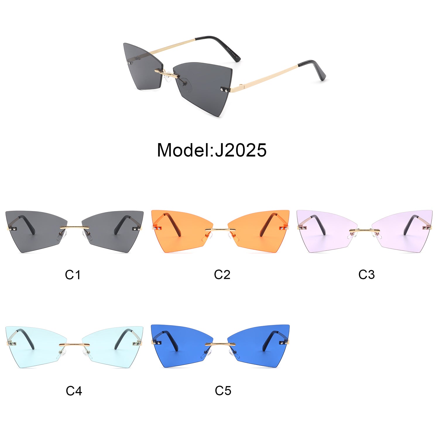 J2025 - Rimless Geometric Triangle Retro Tinted Fashion Sunglasses