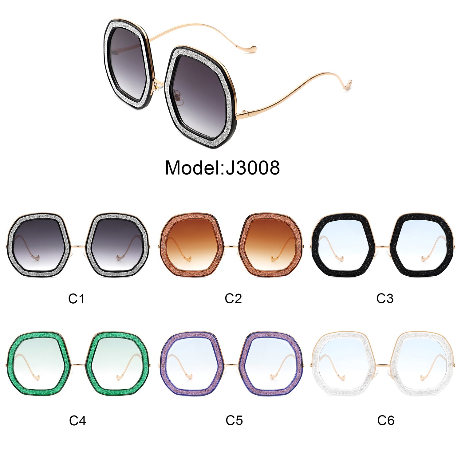 J3008 - Women Round Irregular Geometric Glitter Fashion Sunglasses