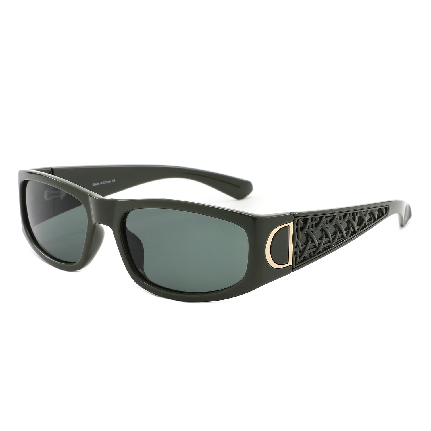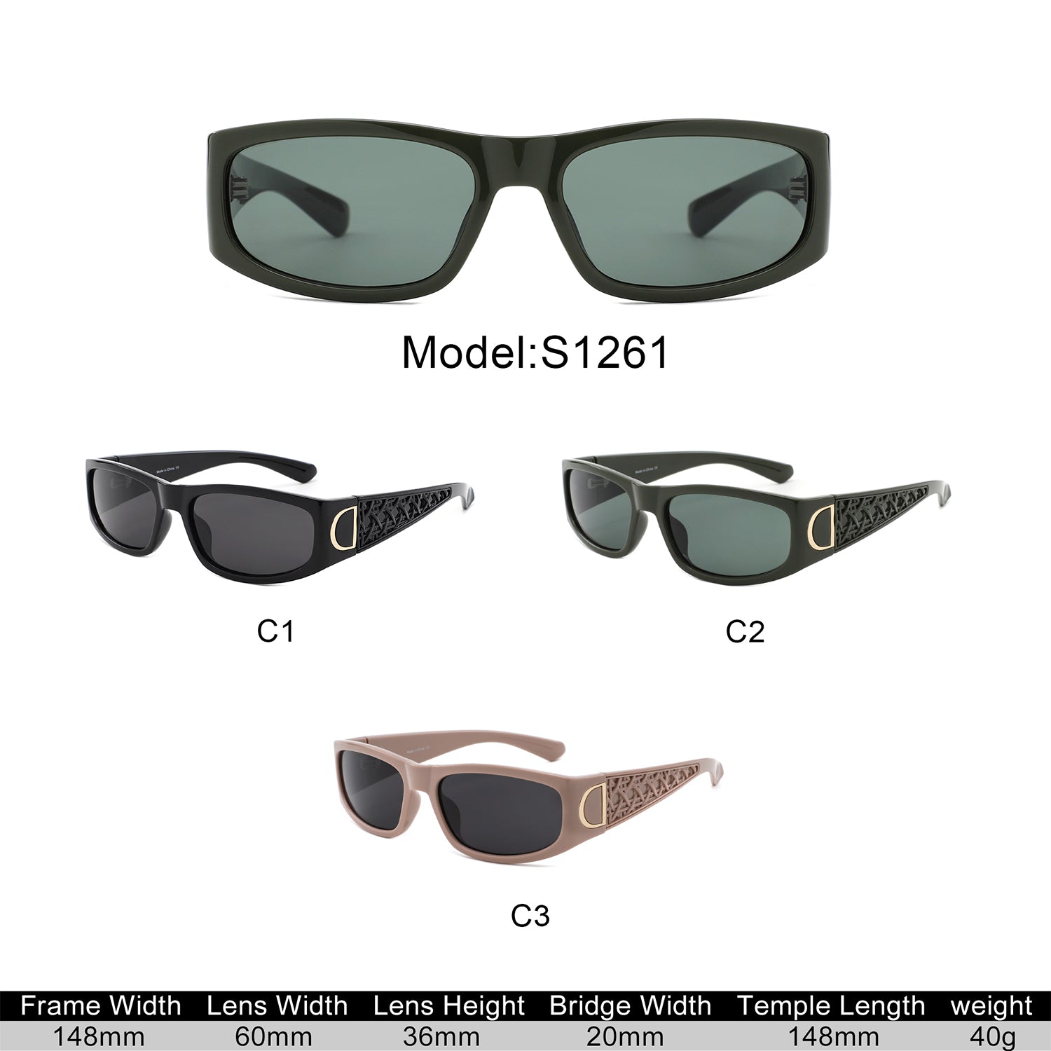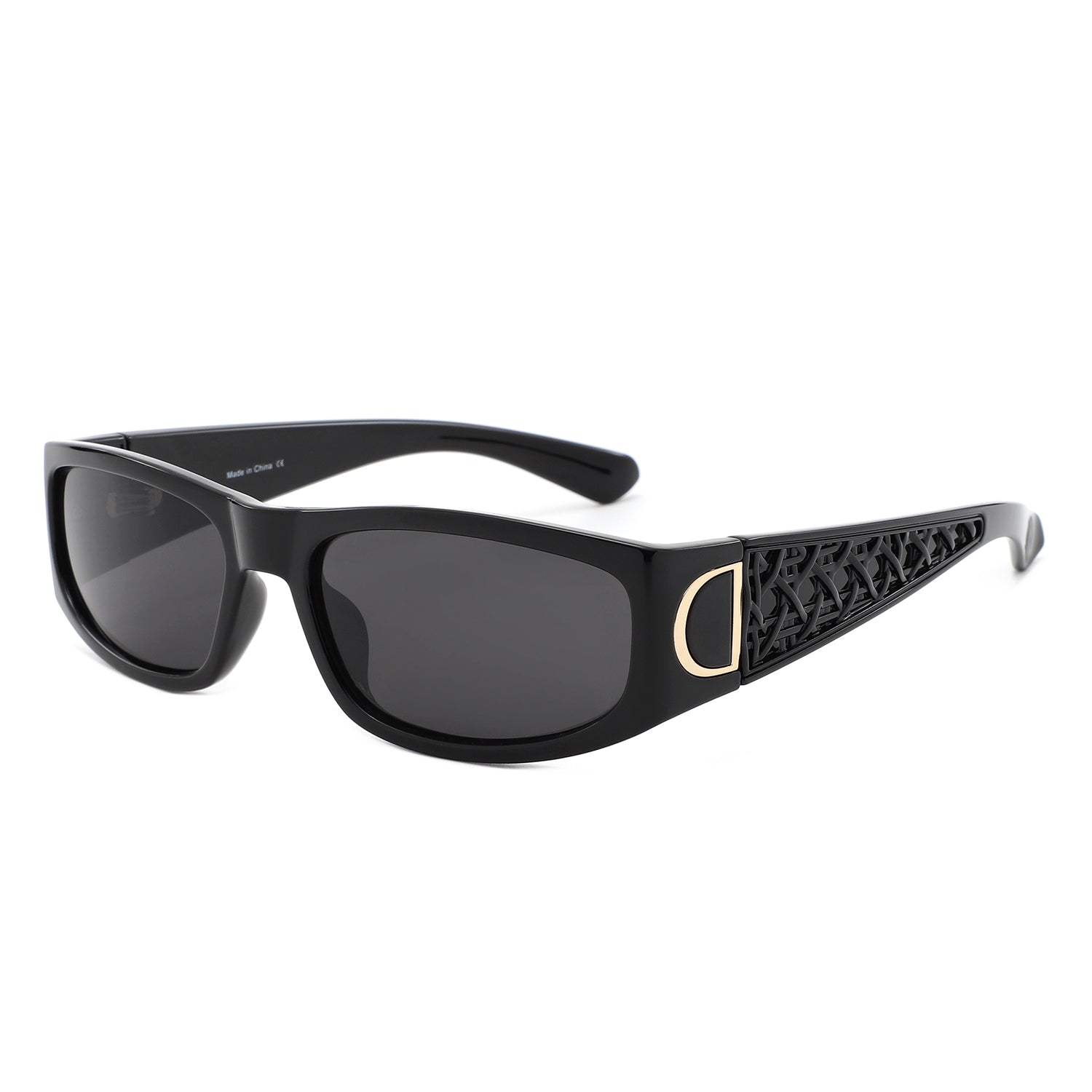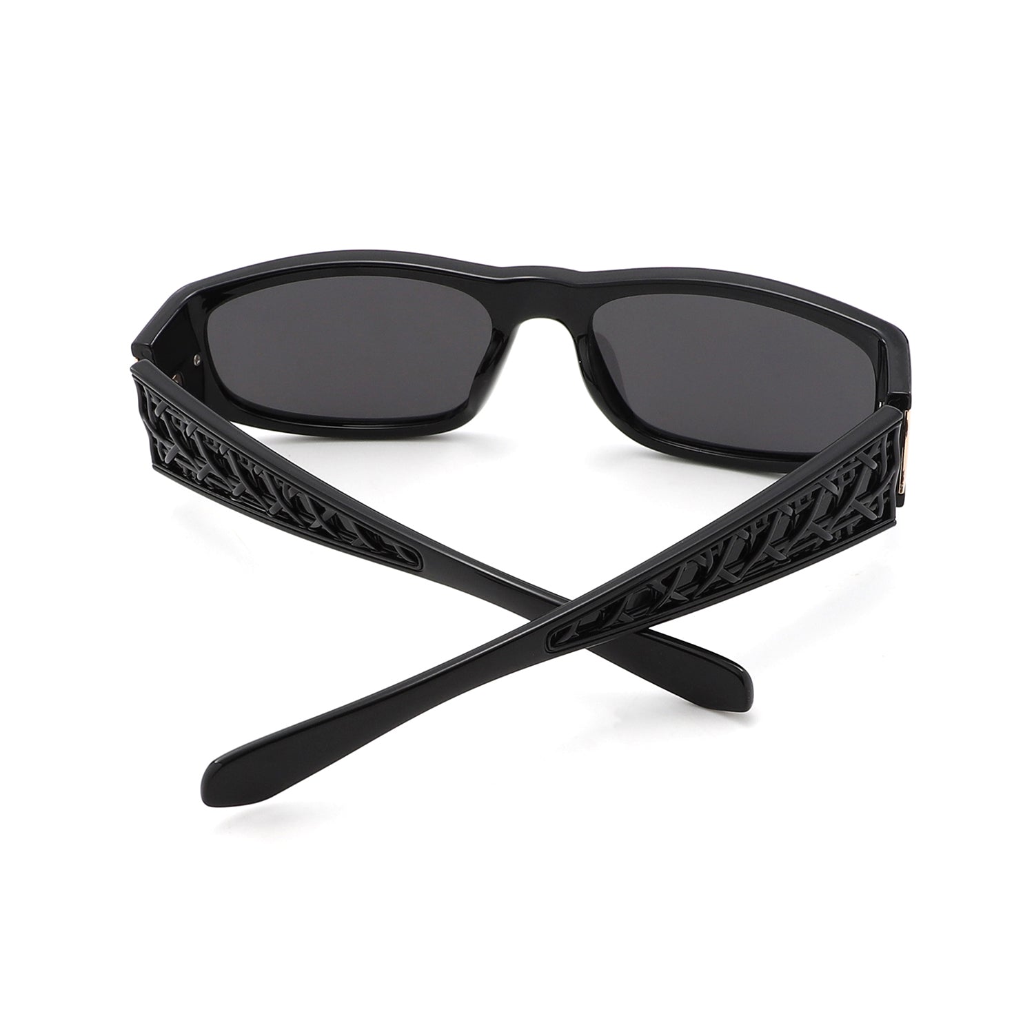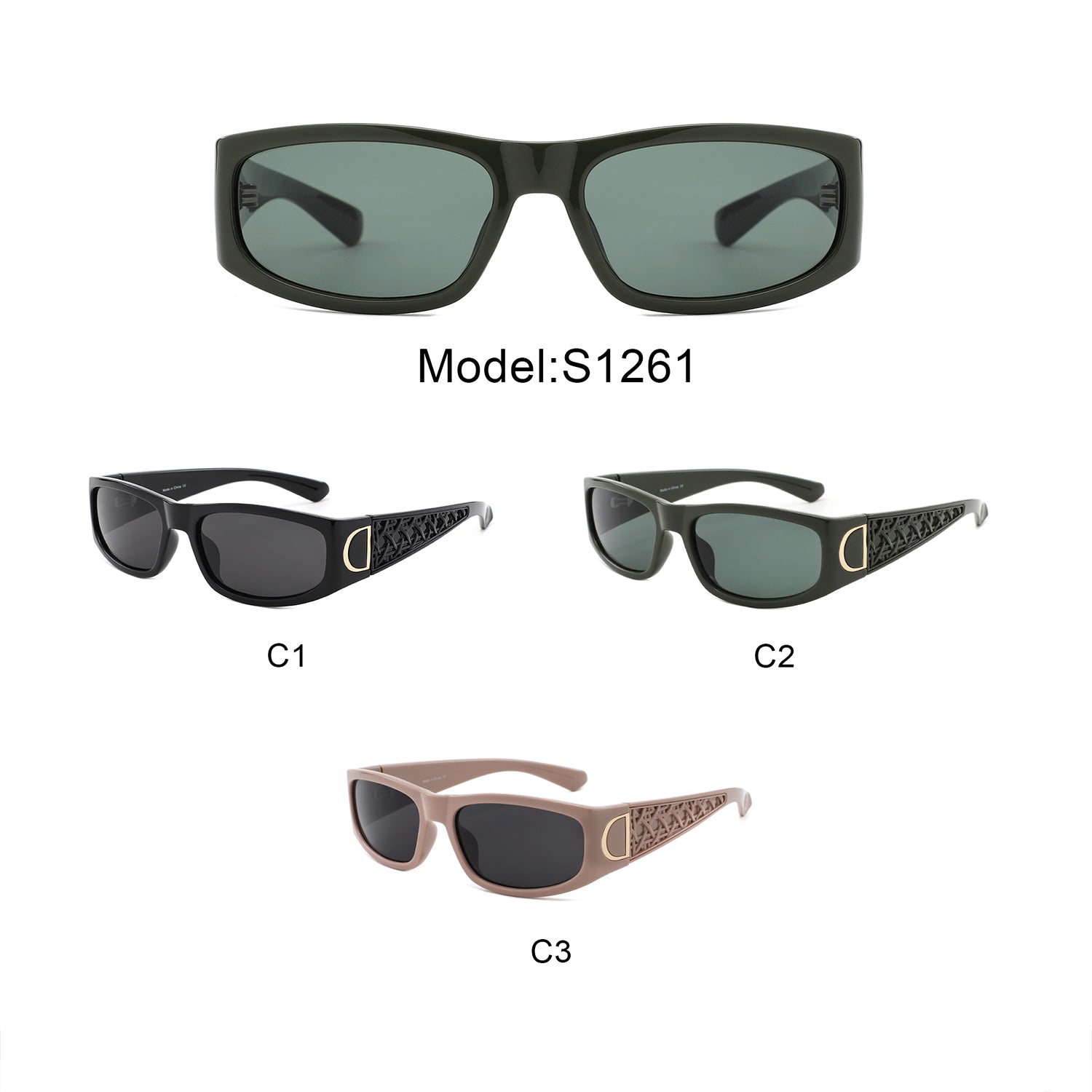 S1261 - Sleek Rectangle Textured Sides Wraparound Fashion Sunglasses