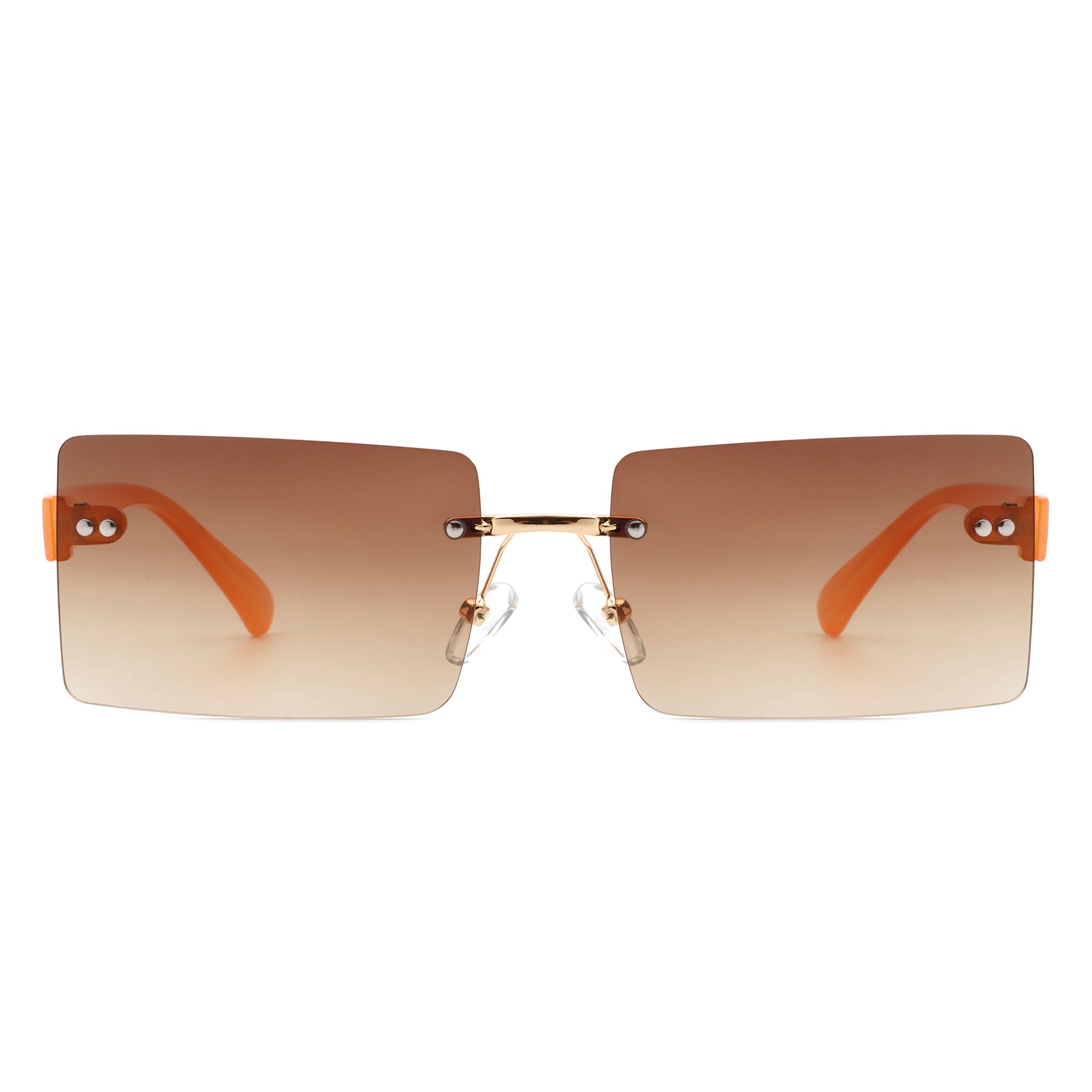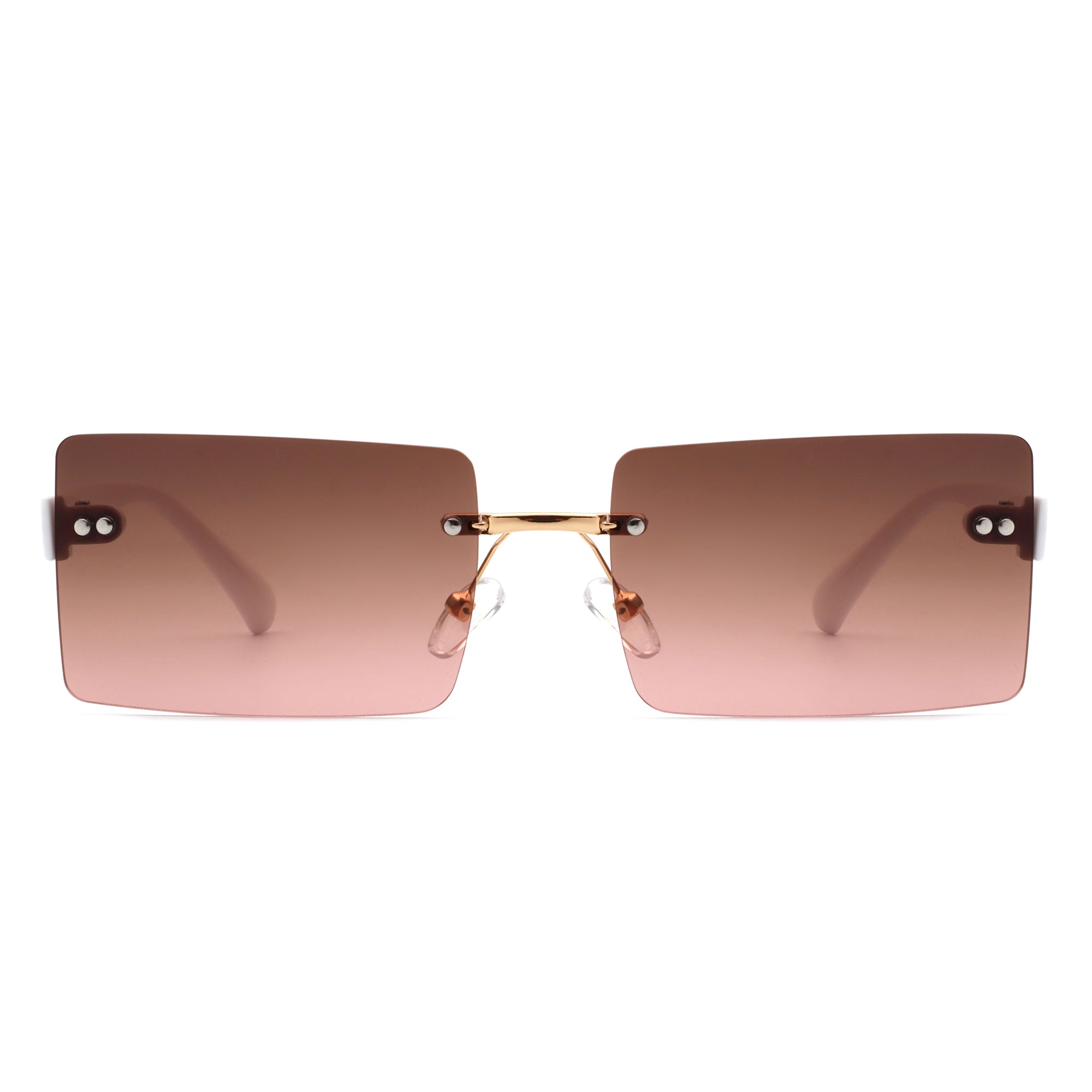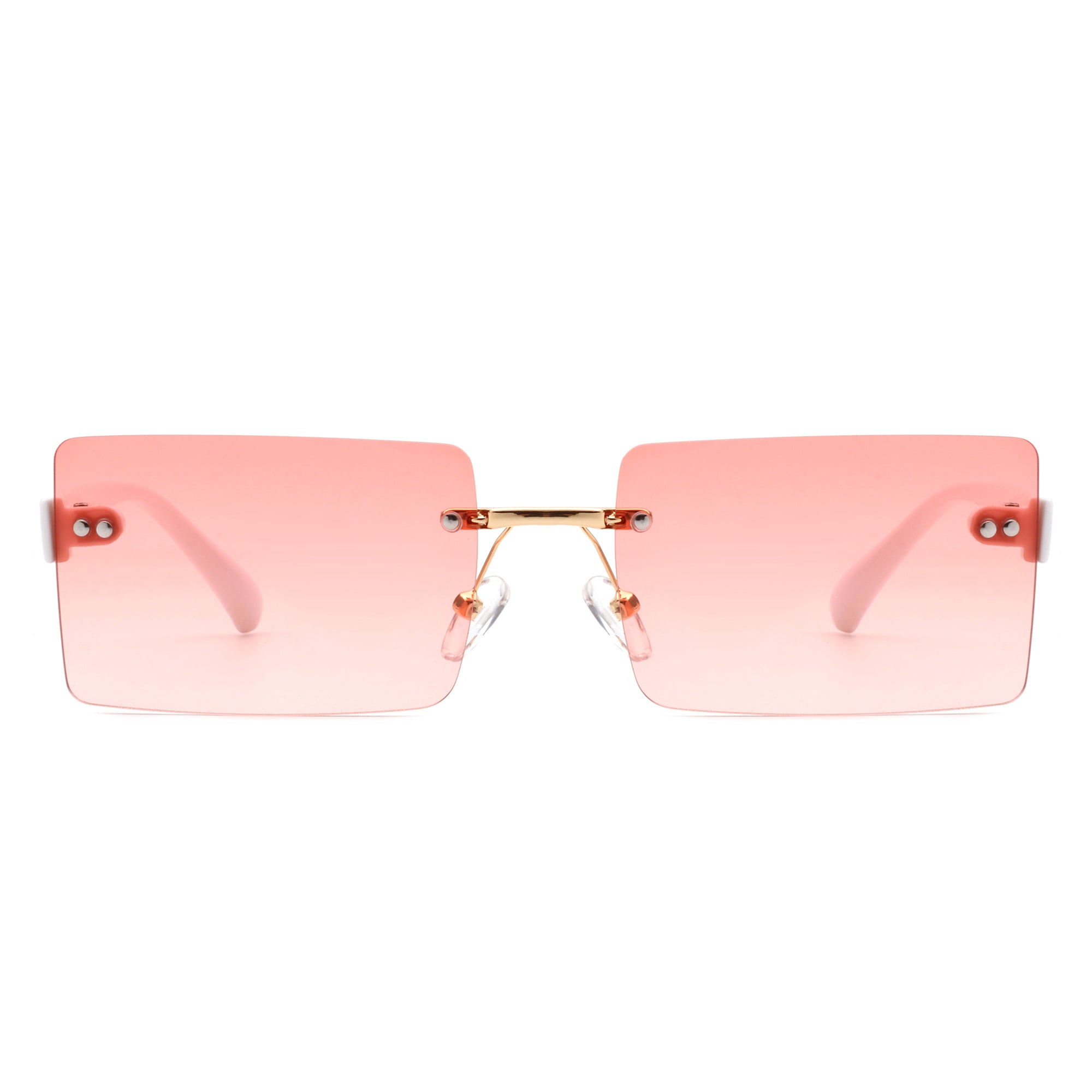 S2113 - Rectangle Retro Rimless Tinted Fashion Square Wholesale Sunglasses