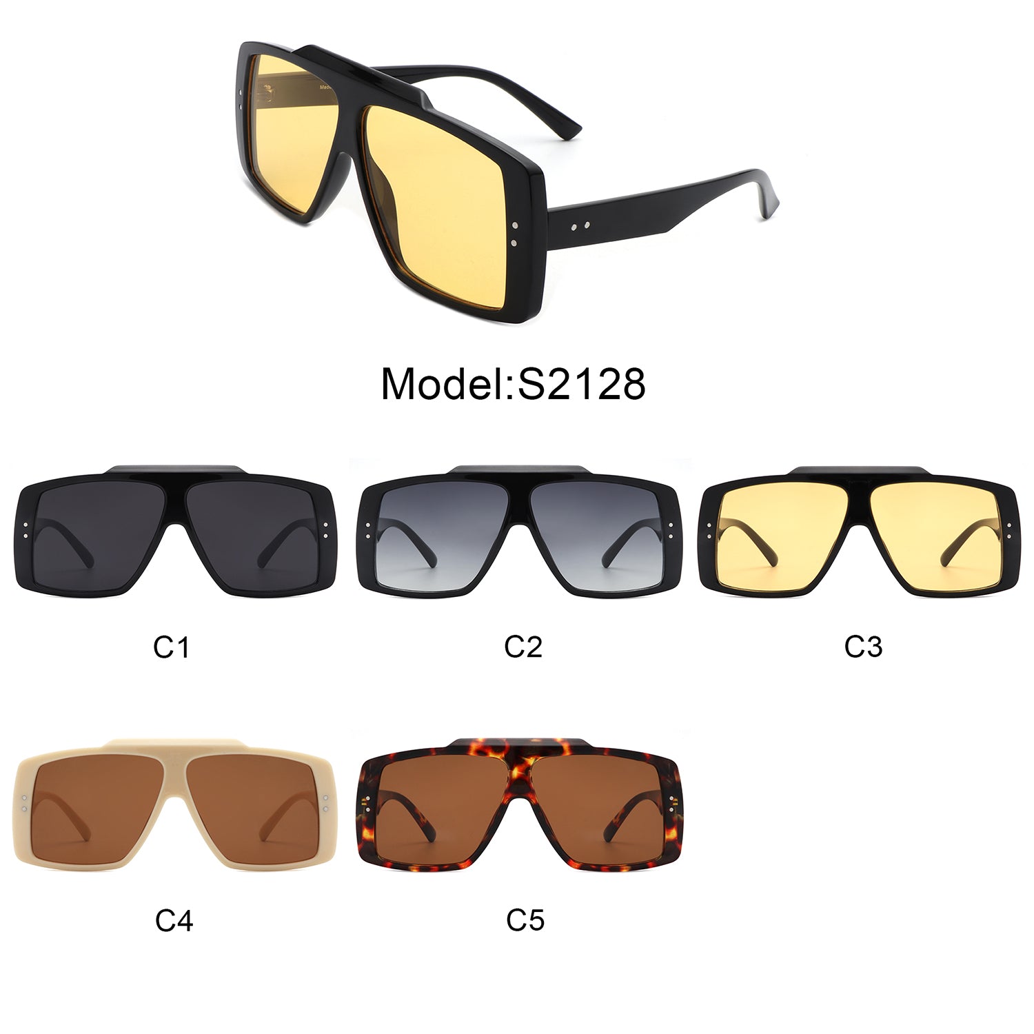 S2128 - Square Retro Flat Top Vintage Inspired Fashion Wholesale Sunglasses