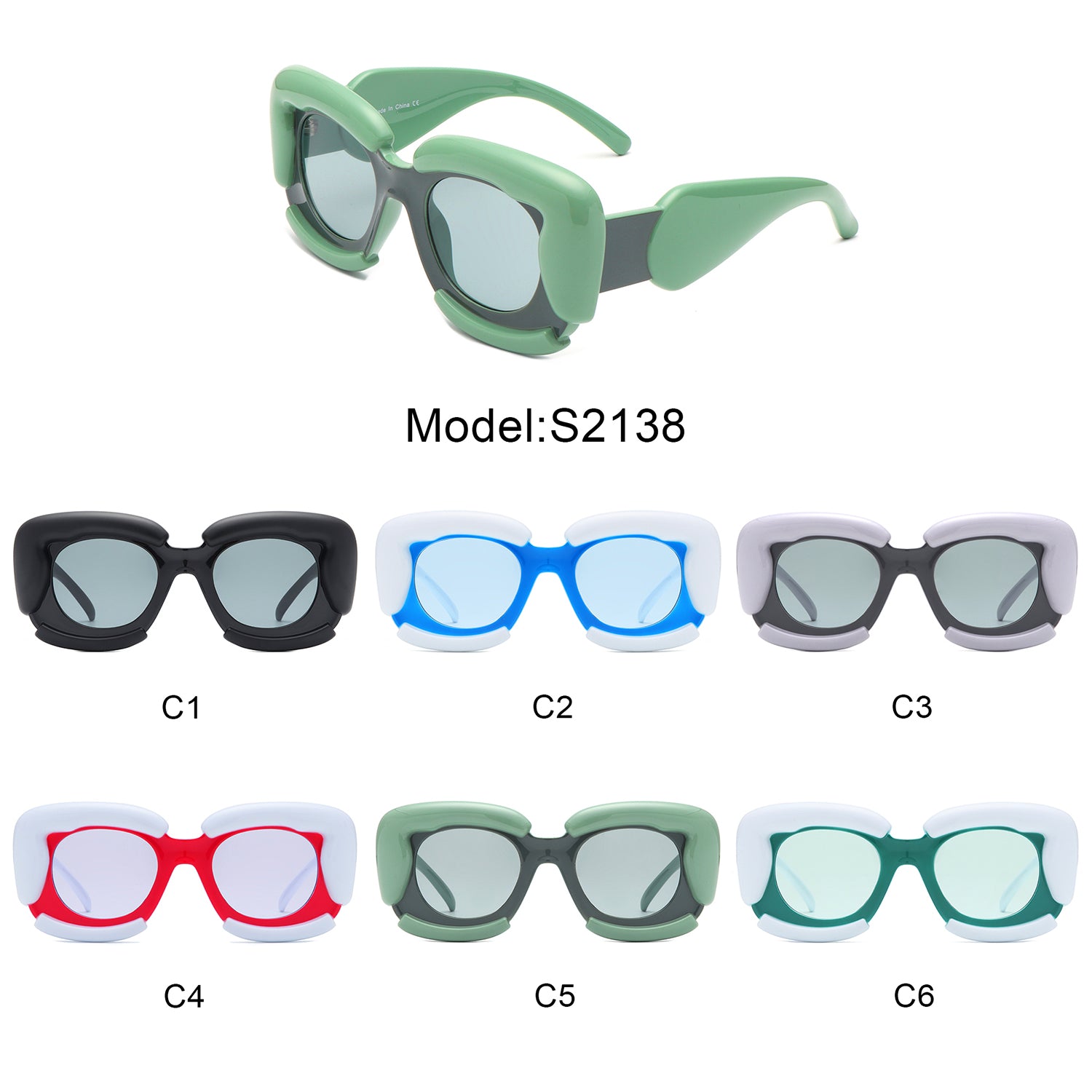 S2138 - Square Geometric Irregular Chunky Fashion Futuristic Wholesale Sunglasses
